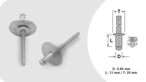 (0010) RIVETTO ALLUMINIO 4.8x11 TESTA MOBILE RENAULT Pz 25